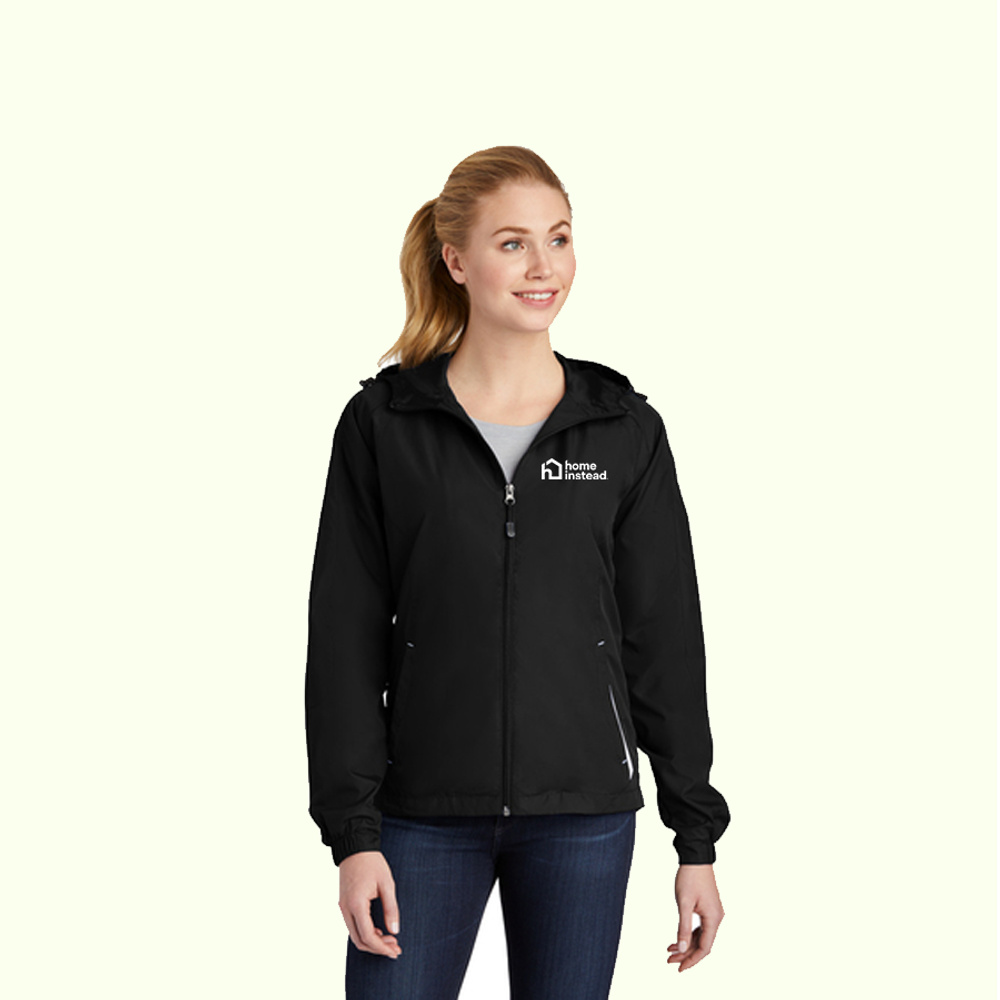 With a drawcord hood and enduring athletic style, this water-repellent jacket is perfect for outdoor sports or everyday excursions.
