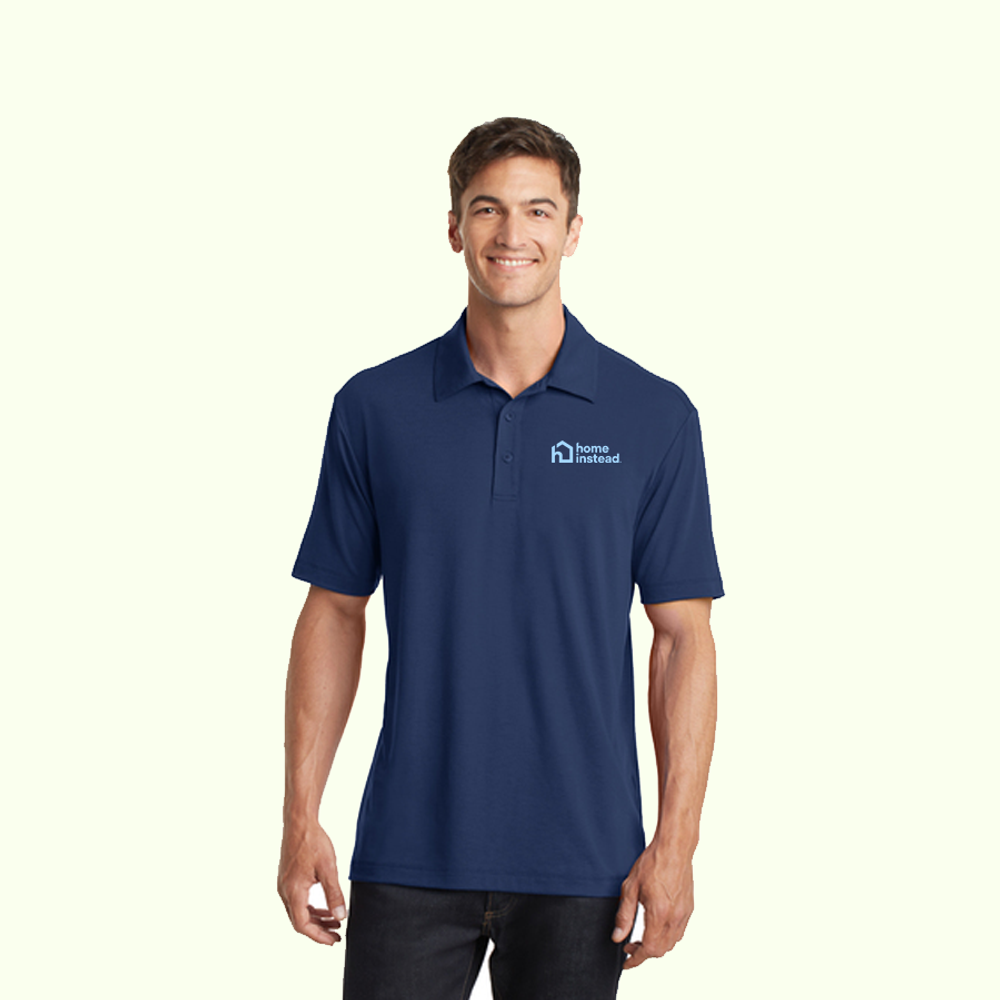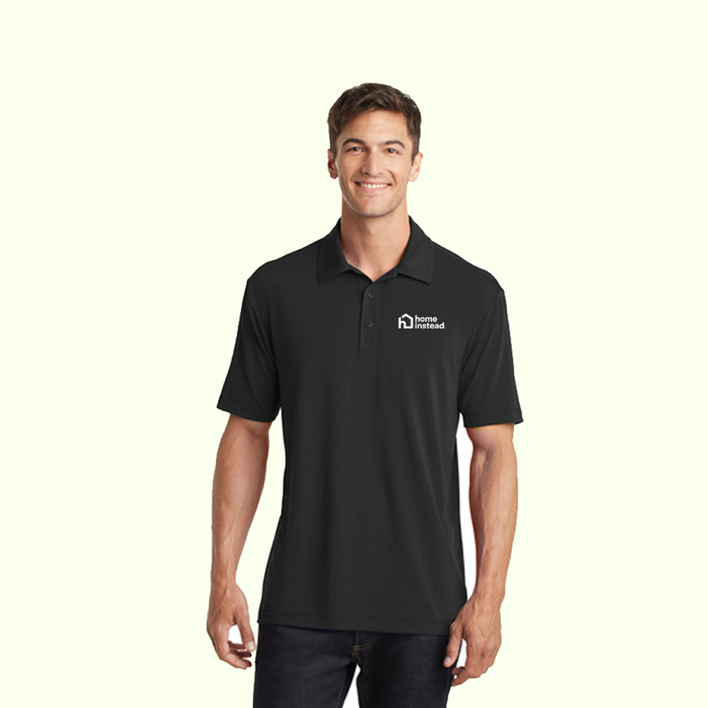 A polyester polo that performs with the comfortable feel of cotton and a touch of stretch. Just right for the workday or after hours, this sophisticated style has subtle texture, manages moisture, keeps you fresher with odor-controlling technology and feels great against your skin.