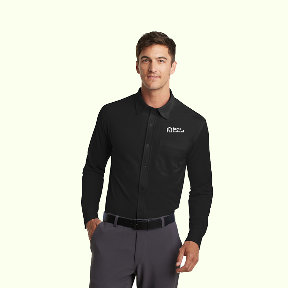Designed for modern office pros and urban commuters, our sleek dress shirt fuses the comfort of a knit with the structure of a woven shirt. It wicks moisture, has ease of movement and an unencumbered fit.