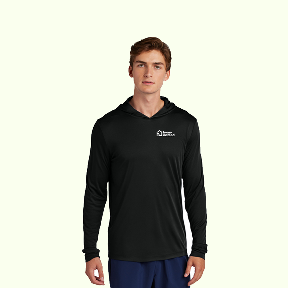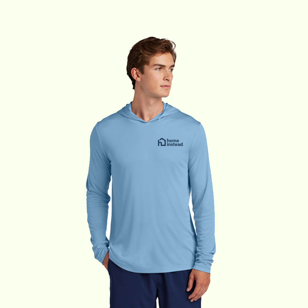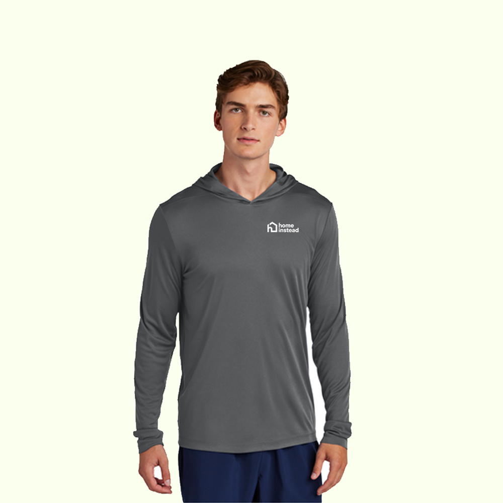 Take the lead in this high-performance long sleeve hoodie with exceptional UV protection and moisture wicking.