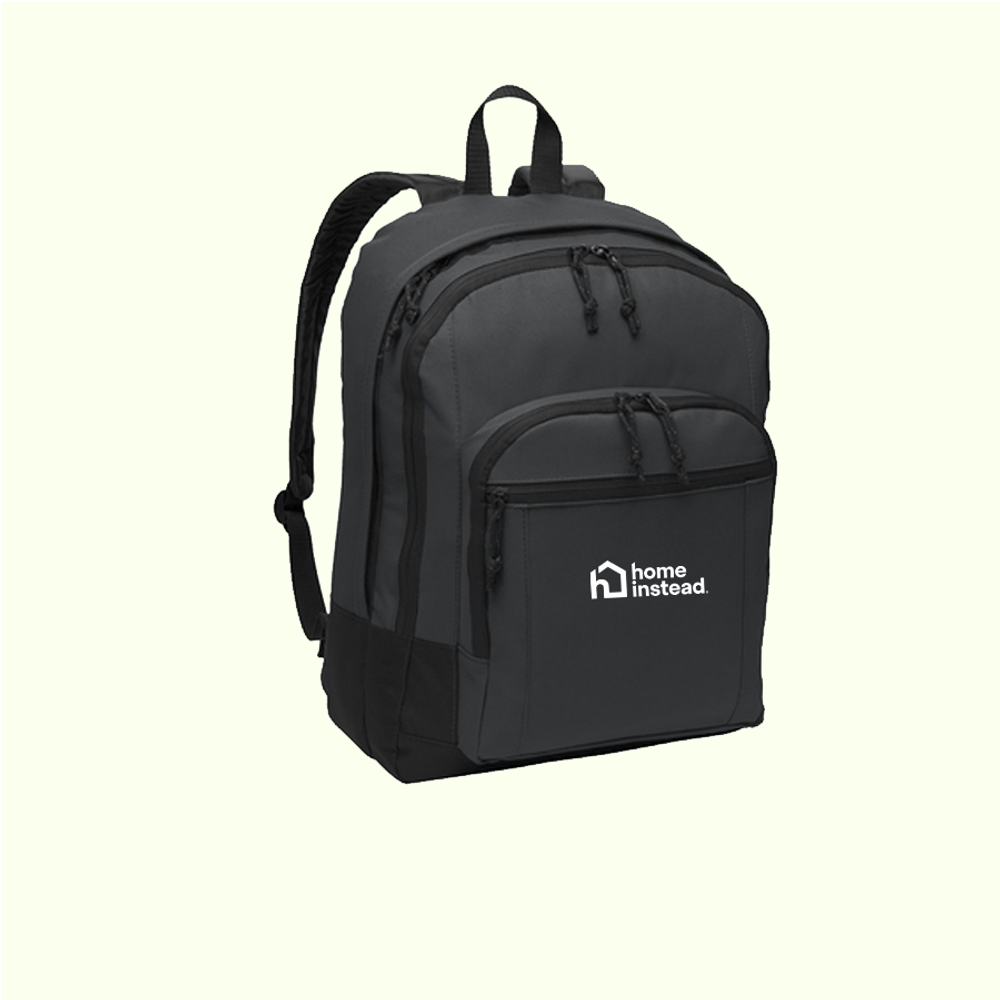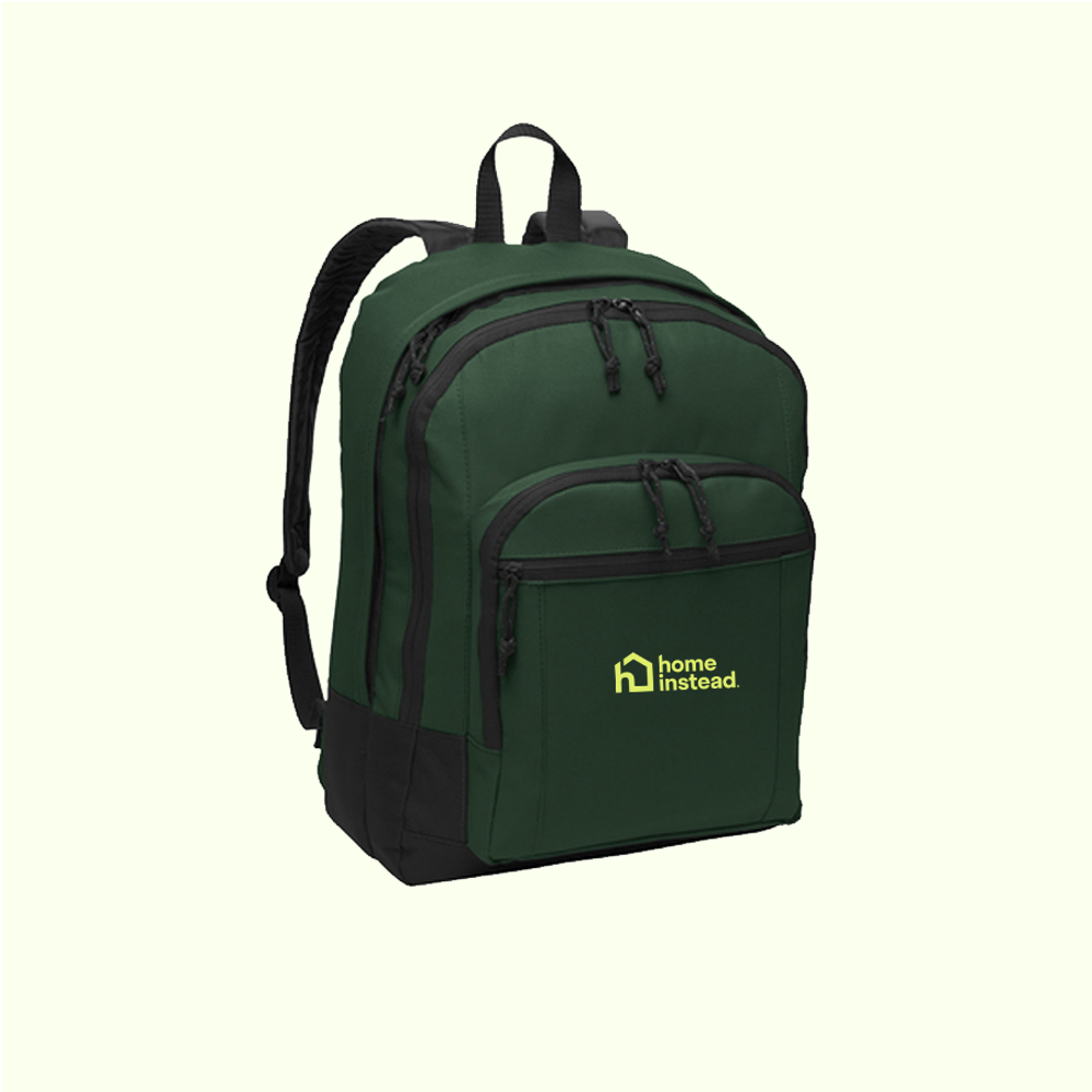 This classic backpack has a large main compartment with a laptop sleeve and a zippered front pocket with a mesh organizer.