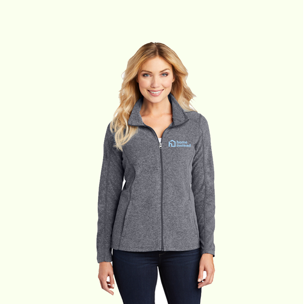 Venture out in warmth and style in this non-bulky microfleece that has a heather look for added visual appeal. An anti-pill finish helps preserve the smooth look on this trend-right style available at budget-friendly prices.